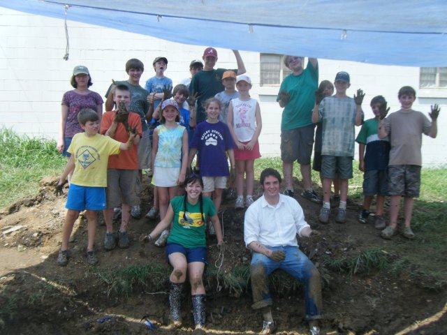 Wednesday morning, we built a small new dig area with topsoil, and reburied the artifacts so at least the students would have a chance to get in there with their tools one last time before the dig was completed. After a morning of recording artifacts, using archaeological tools correctly, and cleaning up our dig site, we all returned to the air-conditioning to finish our exhibit for our visiting families.