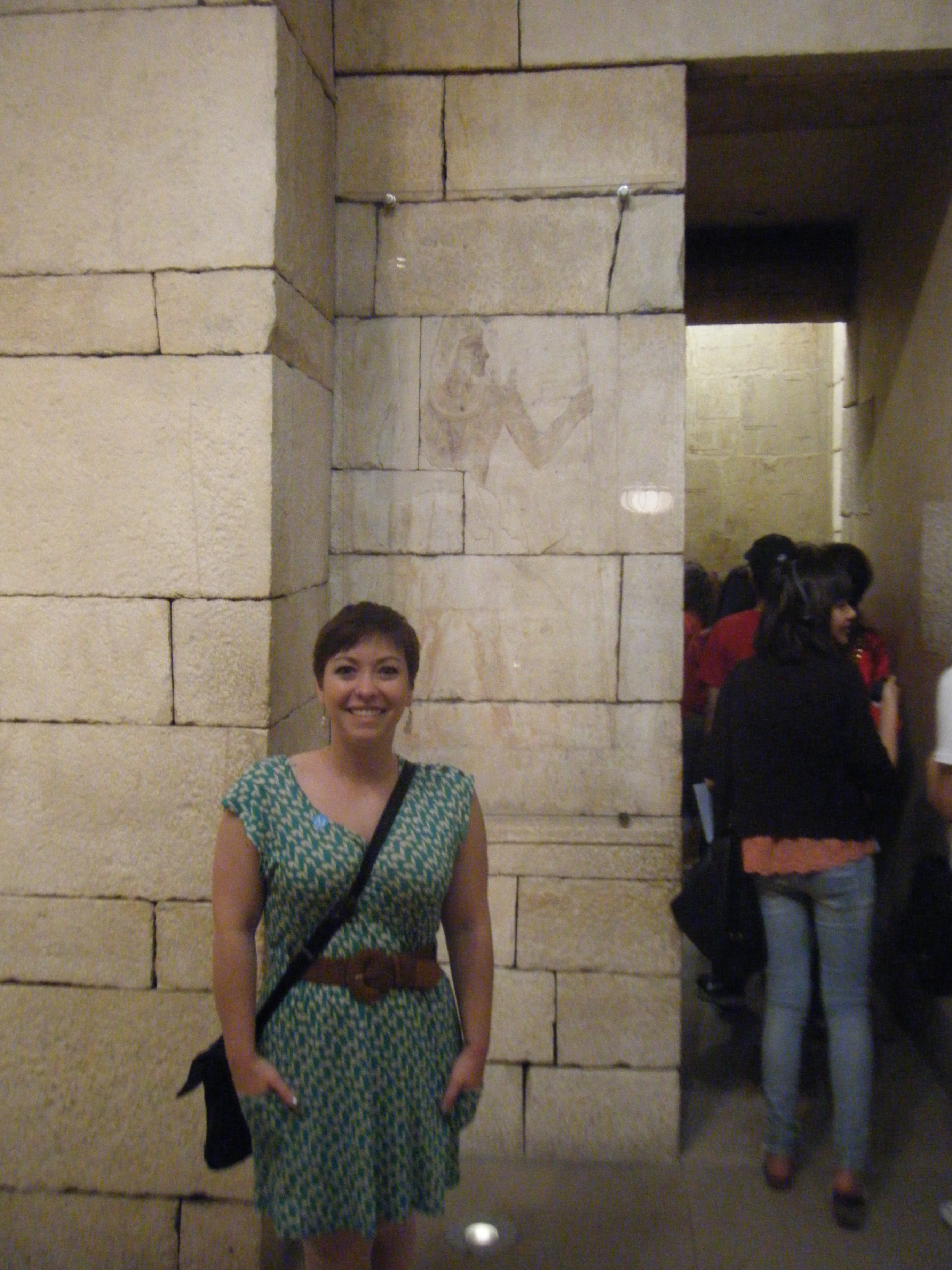 As I ventured through the Egypt exhibits, I had several thoughts. First of all, the exhibit opens with the mastaba of Perneb, which is an offering chapel from the Old Kingdom. Of course it is thrilling to walk through this building that dates from around 2450 BCE; however it also felt really weird to have this building inside a museum in New York City, thousands of miles from its original home. This goes back to the unanswerable question of having objects in museums that are not in the context that they were originally. Obviously I’m excited that so many people get to see this chapel and experience walking through it that might not otherwise have the chance to go to Egypt, but it still felt wrong to have it in a place so far removed from the Old Kingdom in Egypt. I had similar feelings in the Sackler Wing with the Temple of Dendur. For one thing, the water wasn’t running, so my illusion of Harry and Sally meeting in the Met was ruined. Also, how many of those grubby handed children were touching the walls of the temple? Granted, the temple would have been under Lake Nasser after the construction of the Aswan Dam. Somehow, it still felt wrong to me.