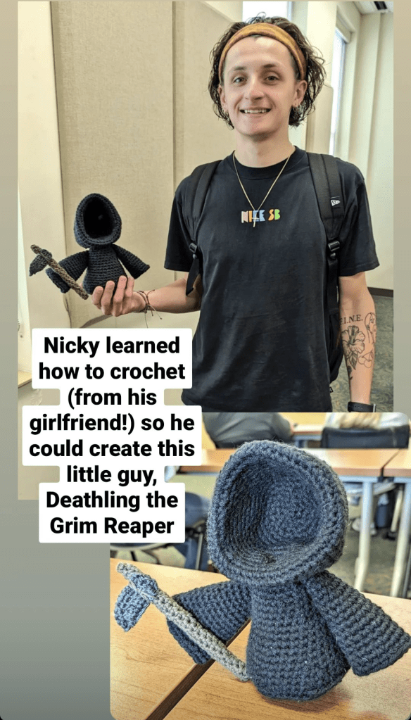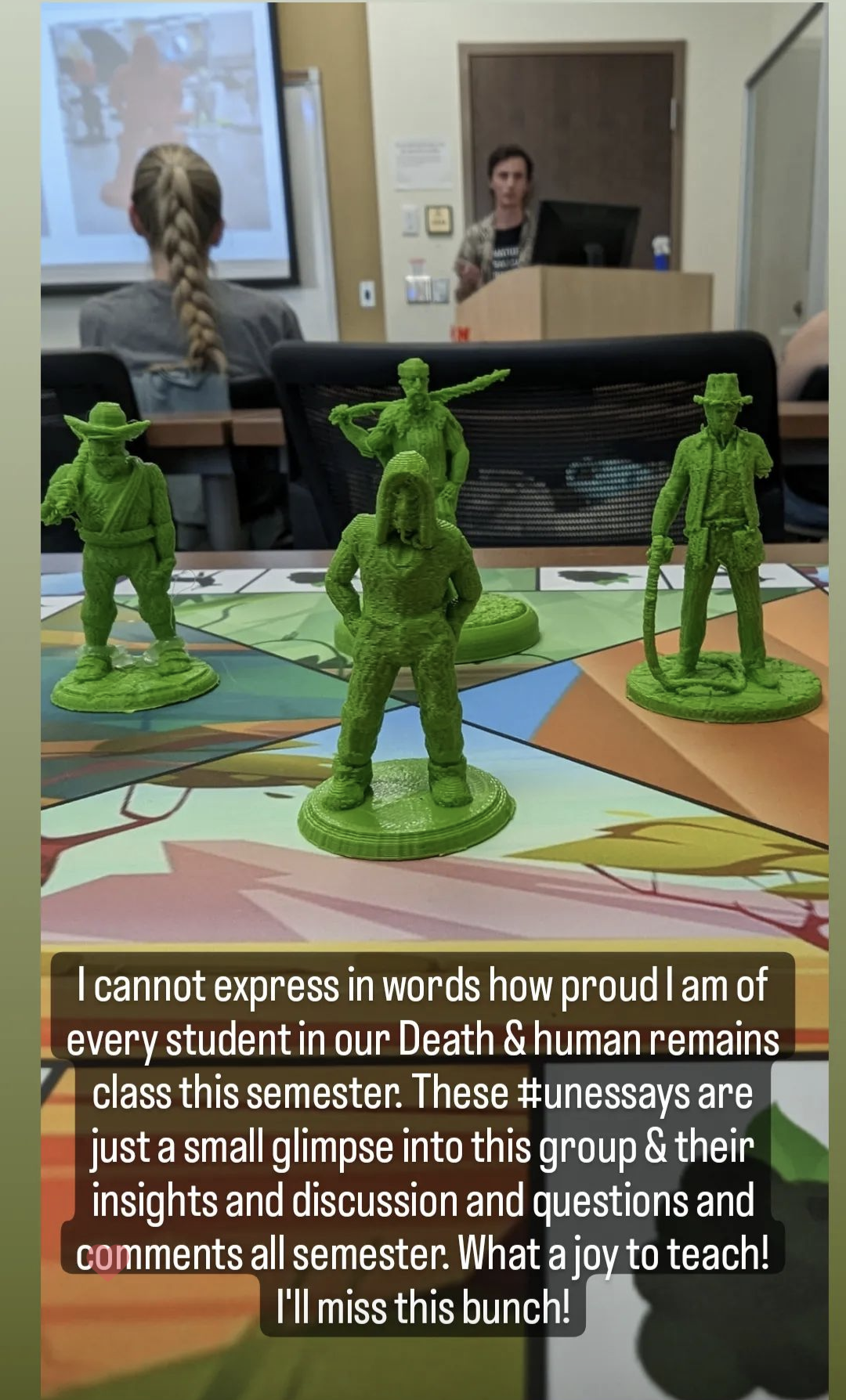 I have written about teaching death studies, posted the syllabus and readings, and I’ve also just recently posted about the UnEssay project I use in class.